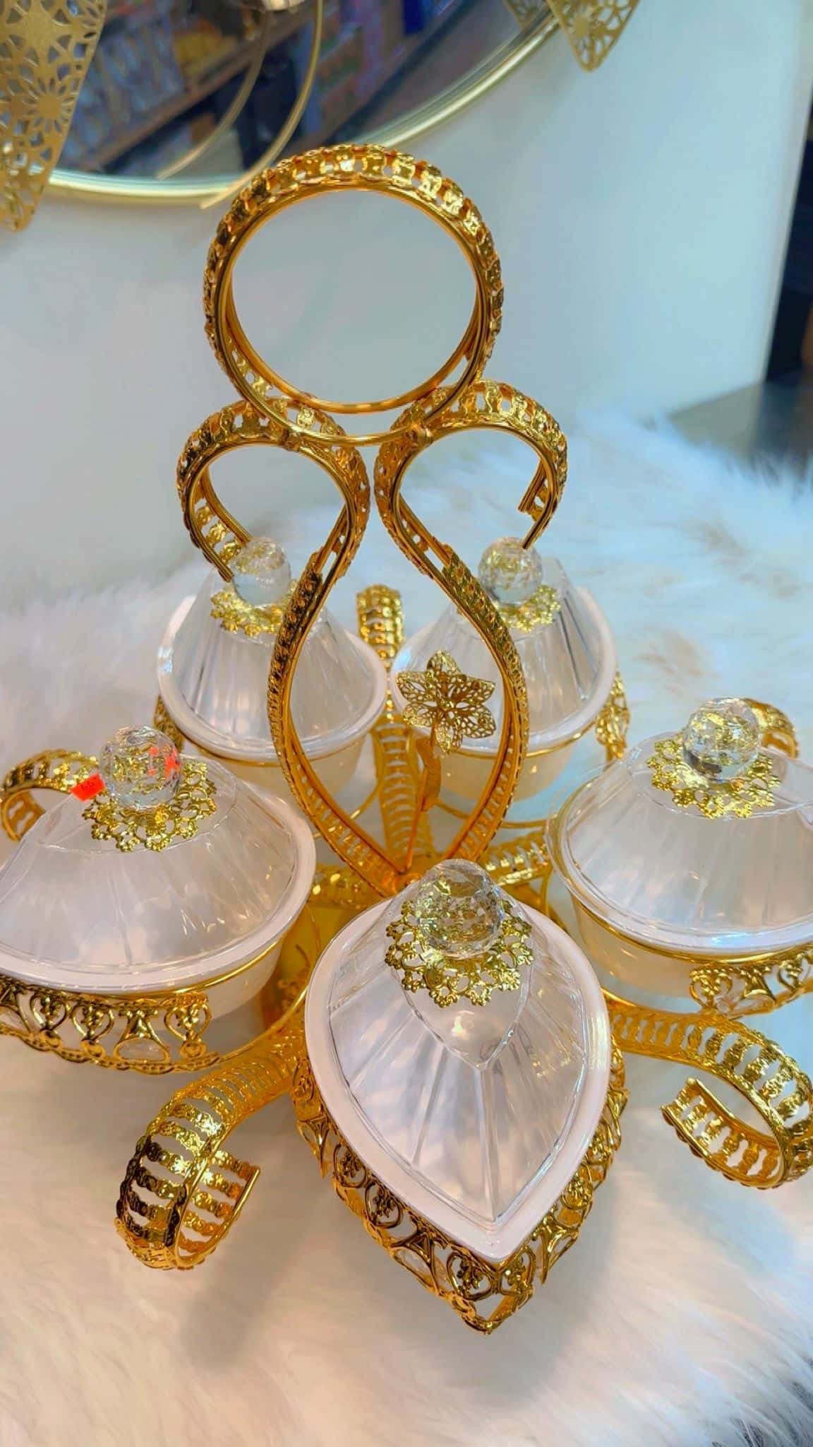 Luxury Gold Plated Serving Set with Crystal-Lid Bowls (5-Piece)